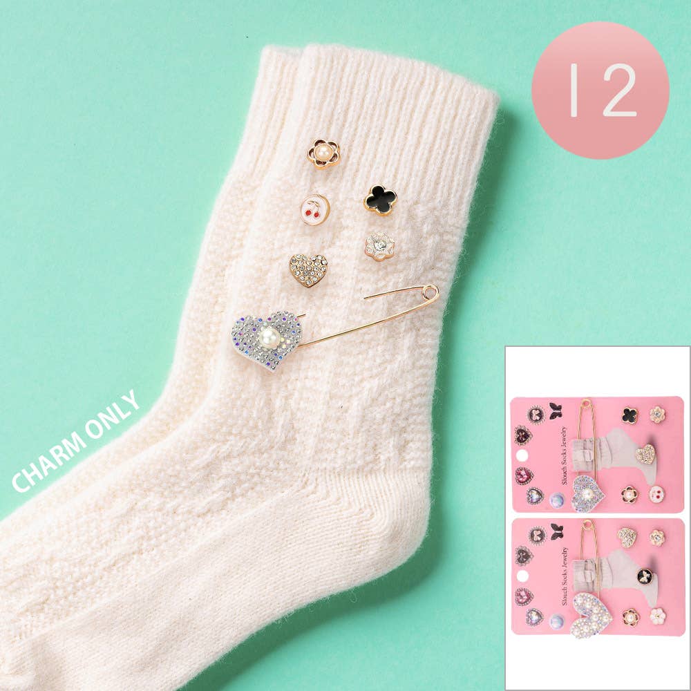 SET OF 6 - Pearl Heart Enamel Flower Pin Slouch Jewelry