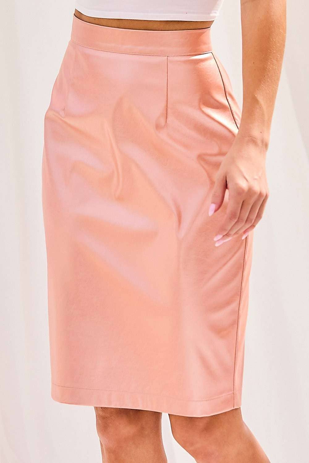 Back Zipper Slit Leather Midi Skirt: ROSE GOLD