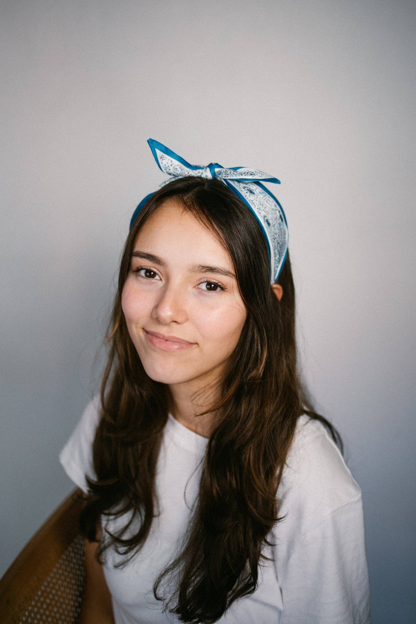 Bright Blue Paisley Boho Satin Scarf Bow Knot Headband
