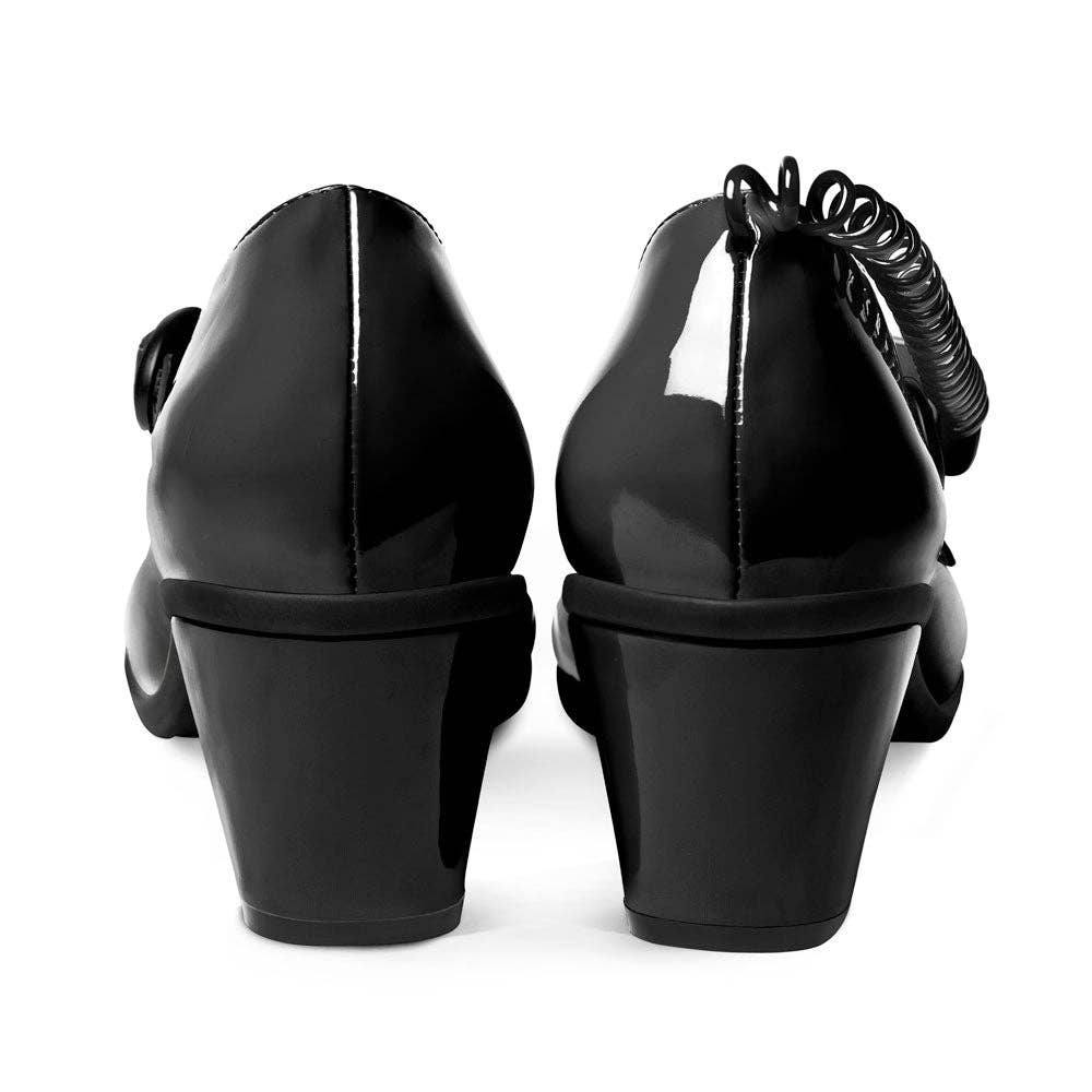 * Patent fabric upper. Synthetic inner * Cushioned inner sole with arch support. Rubber sole * Heel height: 2.5 inches (6.5 cms) * Adjustable buckle strap * Includes erasable marker to write notes on the post it * Proudly vegan * Check our Size Chart to get a perfect fit  * Collect them all!   Step into 2.5 inches of comfy uniqueness! Our Chocolaticas Mid Heels are a confidence pumper for those seeking to impress and enhance her outfit with our vintage-inspired designs and vibrant colors. Their cushioned inner sole with arch support makes them the perfect pair of heels for any occasion. These Mid Heels are the perfect way to tie an outfit together!