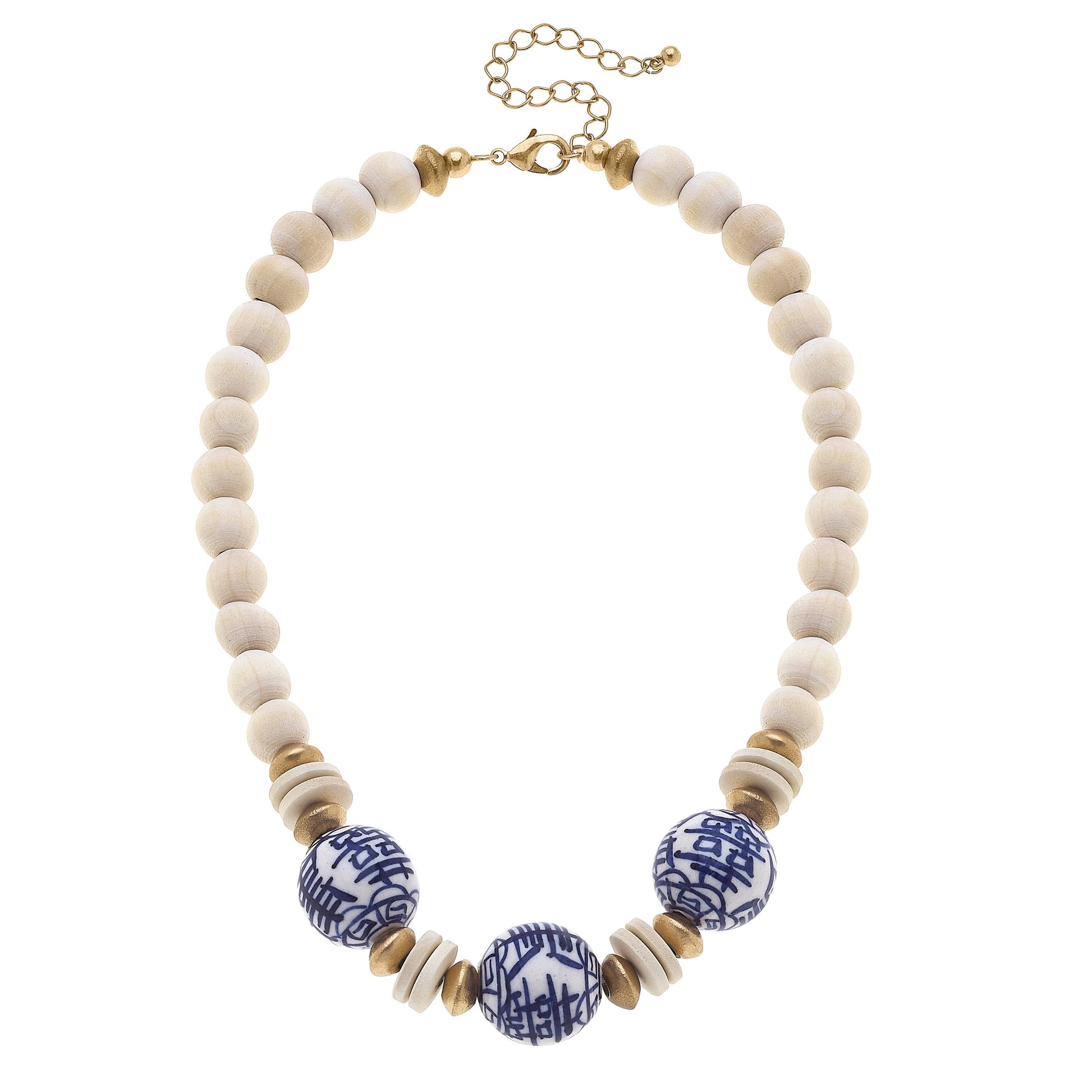 Add a chic statement to your everyday with our Hazel Chinoiserie & Painted Wood Necklace. This chunky necklace features painted wood beads & blue & white painted porcelain, designed to create a stunning look that's perfect for both casual and dressy looks.