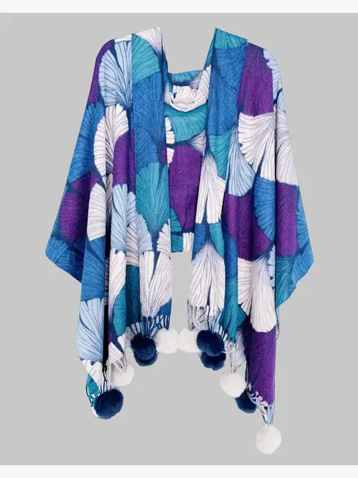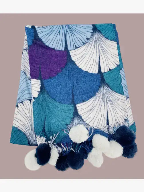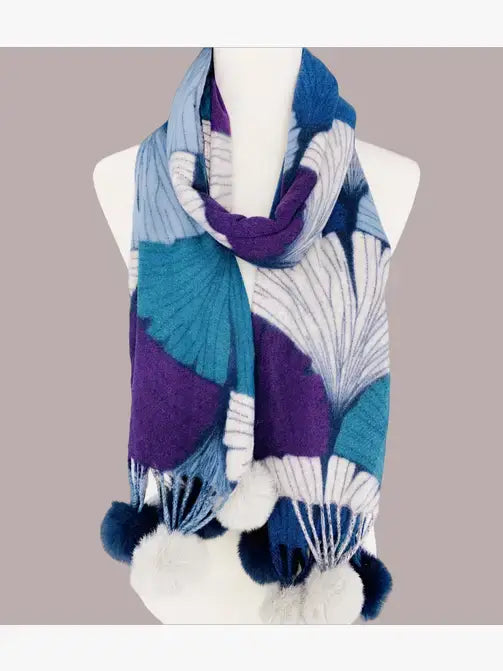 JC023505 Shell-Art Pompom Shawl/Scarf : Teal-Purple