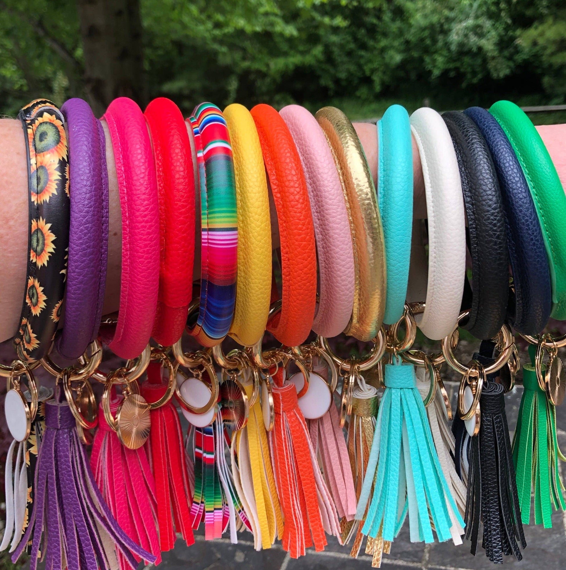 THE Lauren Lane Halo Bracelet Keychain! Go hands free! Slide this oversized bangle on your arm to have your hand free while you are on the go. Also, this bangle keyring makes finding your keys SO MUCH easier when they are in your bag!