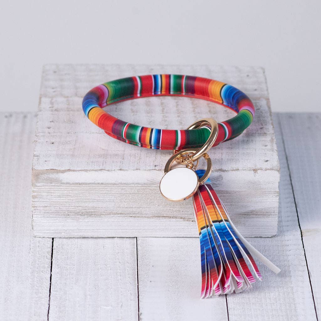 Lauren Lane Halo Tassel Bracelet Key Chain / Key Ring-Rainbow Serape
