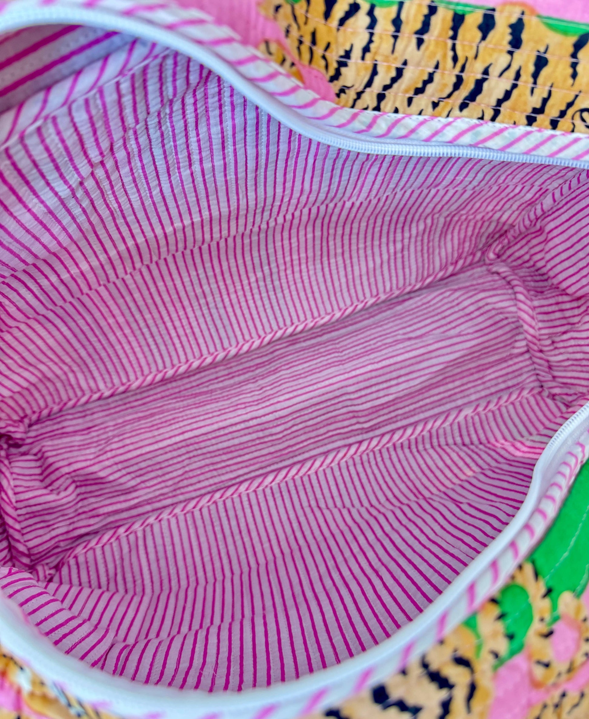We've paired our most popular tiger print with the most perfect complimentary stripe, and give you super amazing Weekend Tote Bag! You'll be reaching for this large, quilted overnight bag for all those quick trips and girls' weekends.