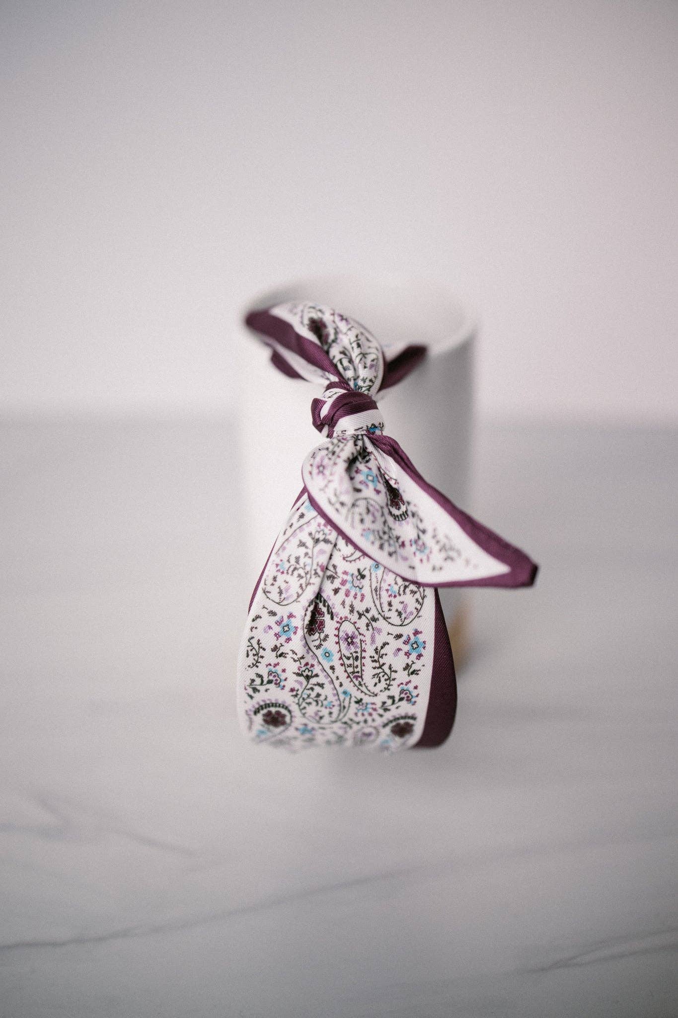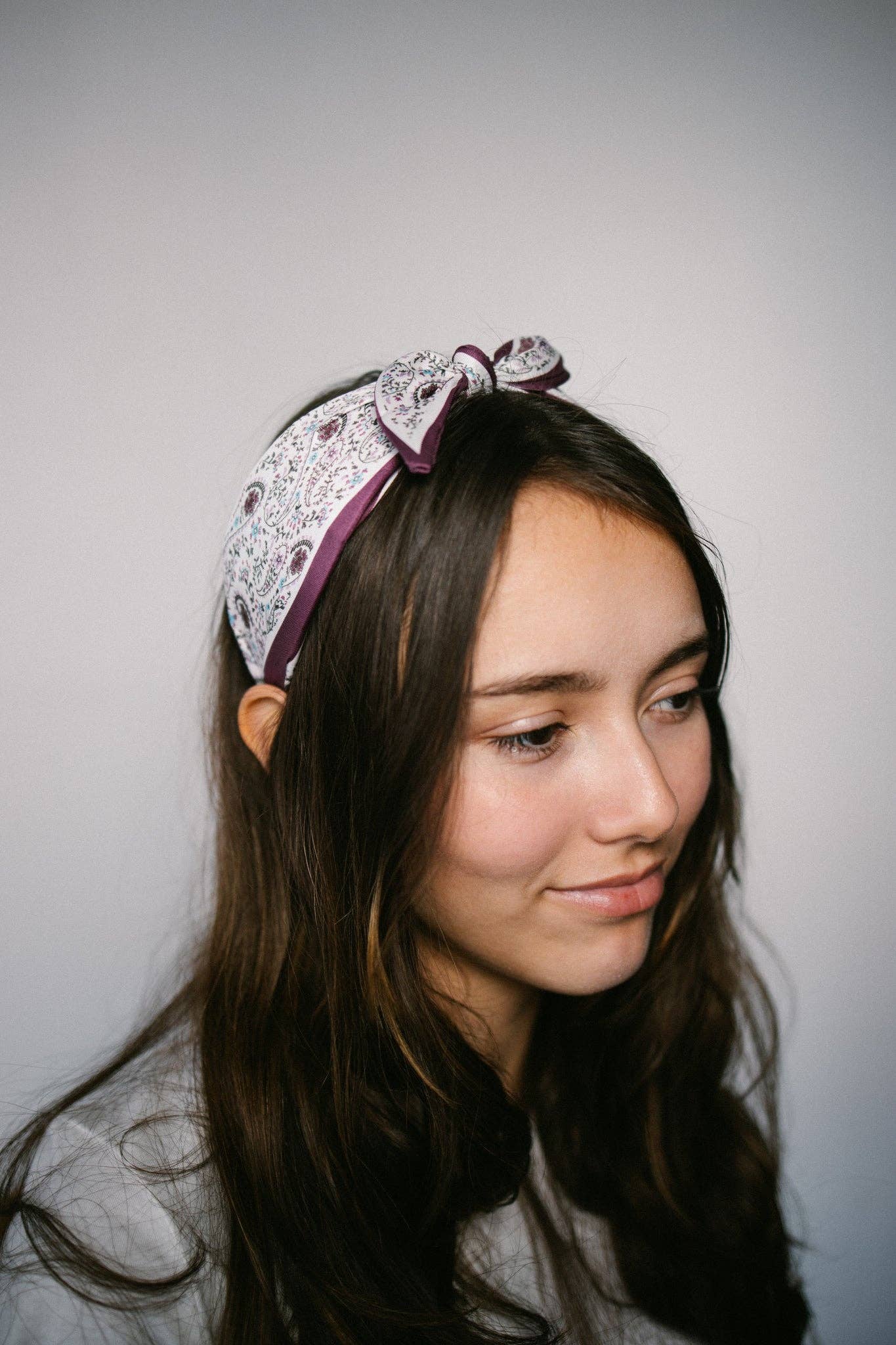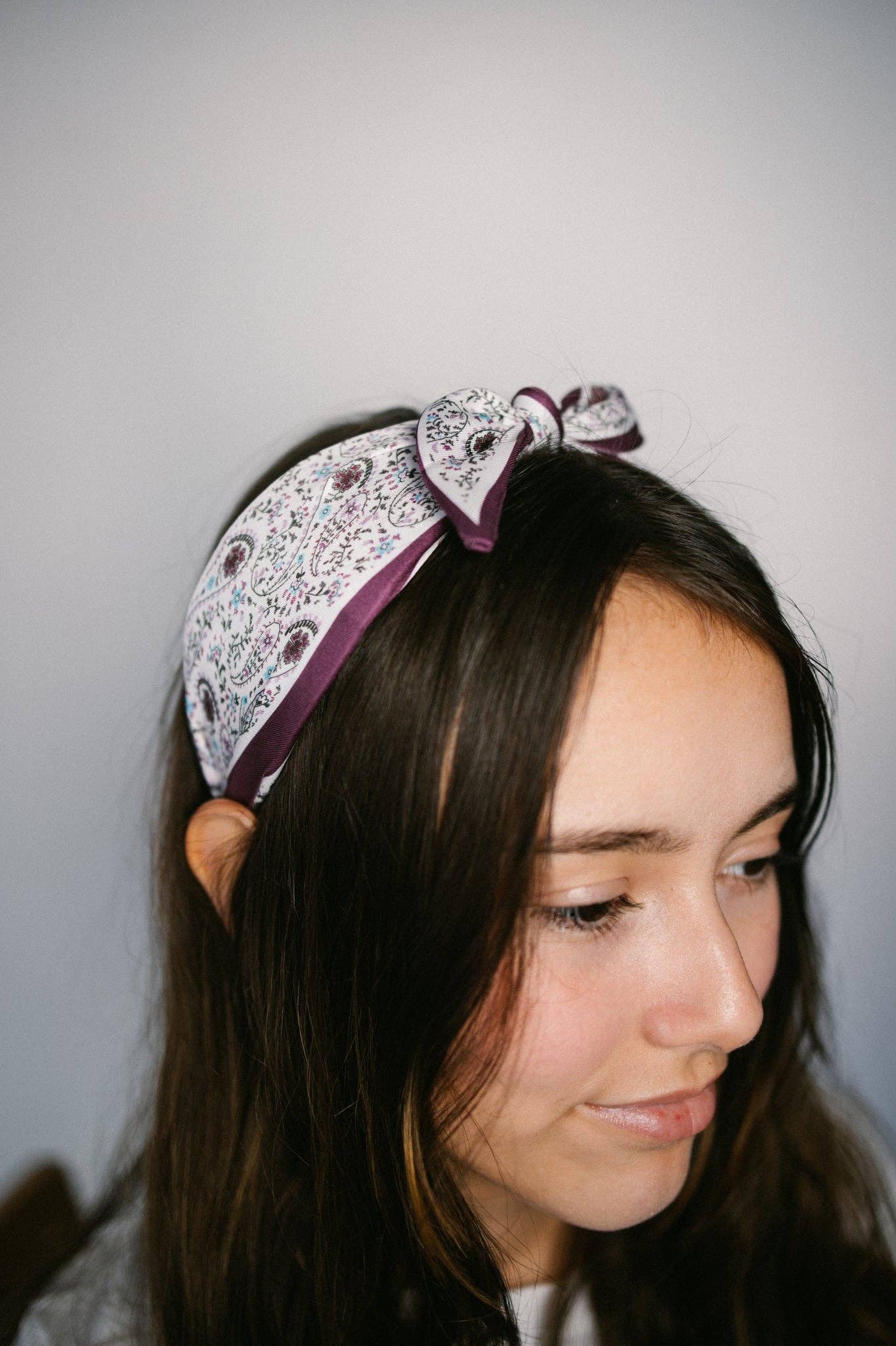 Purple Paisley Boho Satin Scarf Bow Knot Headband