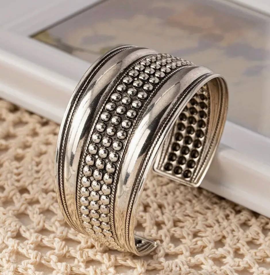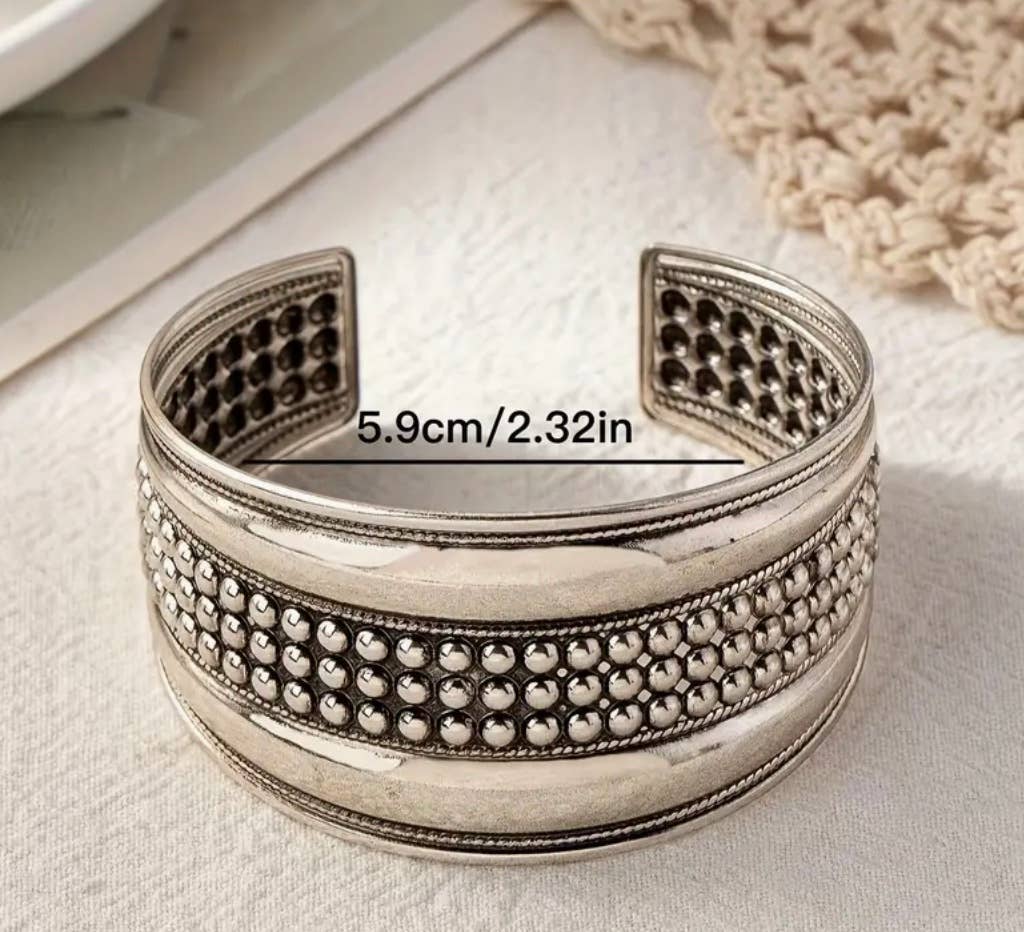 Embrace timeless elegance with the Vintage Silver-Plated Hollow Open Cuff Bracelet. This unisex accessory features a sophisticated design with intricate detailing, adding a touch of vintage charm to any outfit. Crafted with Iron and a durable silver-plated finish, this open cuff bracelet offers both style and comfort for everyday wear. Perfect for both men and women, it effortlessly complements any look, from casual to formal.