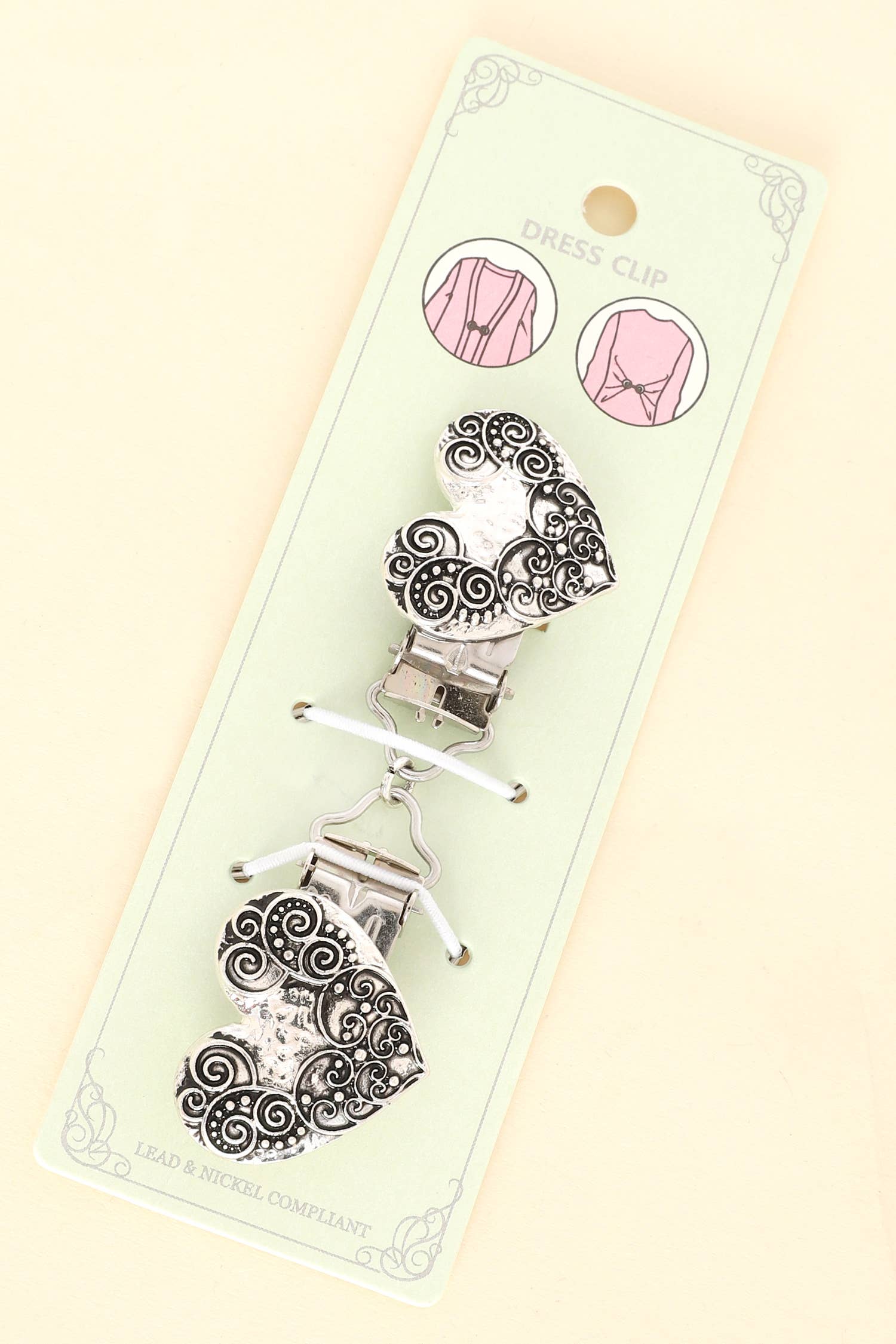 Add a touch of elegance to any outfit with our Tailored Look Filigree Heart Dress Clip. With intricate detailing and a unique design, this clip will elevate your style and make a statement. Keep your dress in place while adding a touch of sophistication.