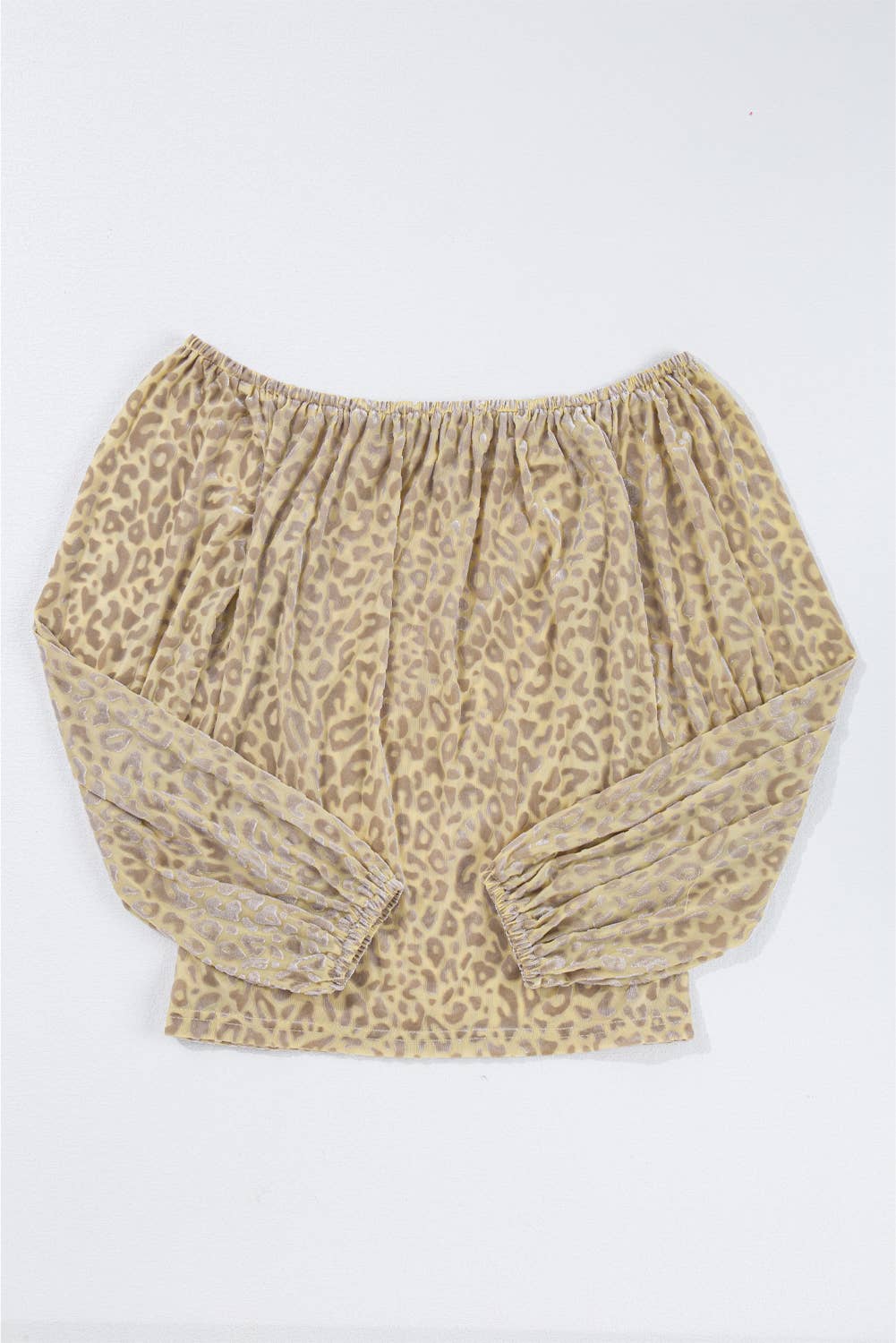 Velvet Wild Leopard Off Shoulder Long Sleeve Top